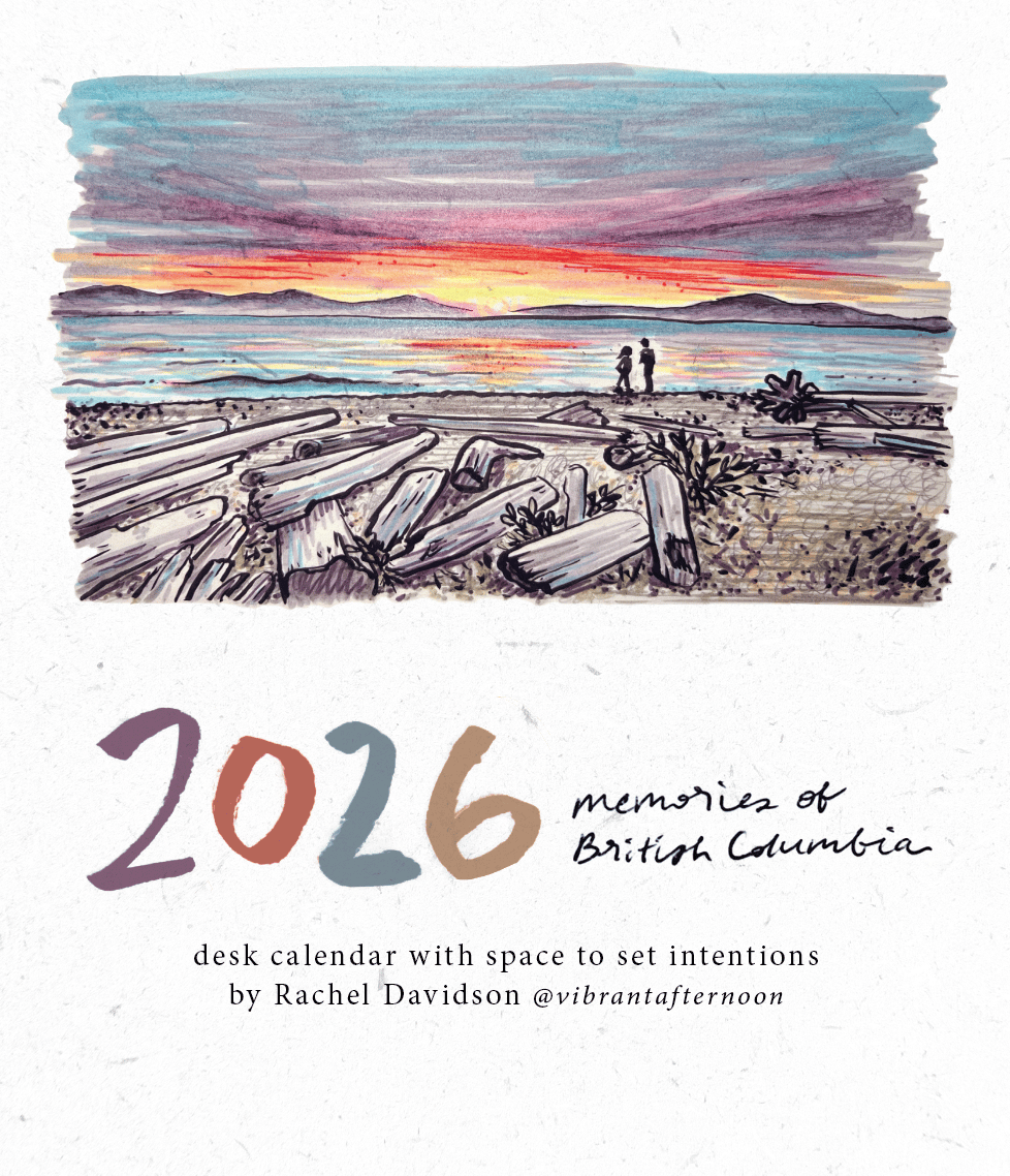 Thank you for your support! After selling out of my 2025 calendar, I still felt so inspired by the unbeatable beauty of British Columbia. I thought back to my childhood spending whole days at Playland & the PNE, as well as the joy of seaside strolls and more recent trips to the Sunshine Coast and Vancouver Island.