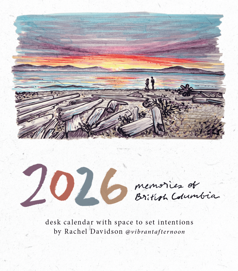 Thank you for your support! After selling out of my 2025 calendar, I still felt so inspired by the unbeatable beauty of BC. I thought back to my childhood spending whole days at Playland & the PNE, as well as the joy of seaside strolls and more recent trips to the Sunshine Coast and Vancouver Island.