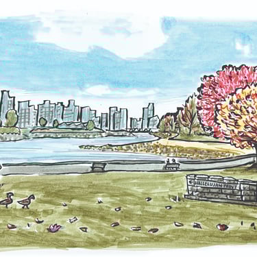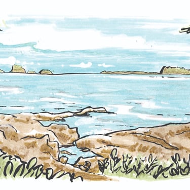 Watercolour is a notoriously intimidating medium, because the liquid paint permeates the paper. There are no "take-backs," save frantically dabbing the surface with a paper towel to draw back the moisture and pigment. Somehow, by embracing my amateur status, I came to thrive under this limitation. I can spend hours in the flow state, gradually building up colours and using white gel pen in the place of the coveted "undo." In this way, I've become drawn to slowly and lovingly capturing food and landscapes.